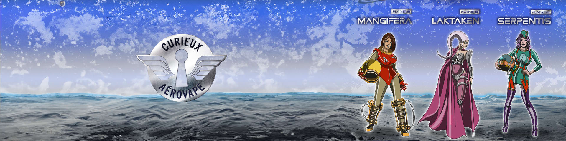 En créant la gamme Aérovape, le liquidier français Curieux transporte le vapoteur dans l'univers de l'aviation, voire dans le space opera. Les e-liquides issus de cette gamme résultent de recettes excellemment composées et qui agrémenteront vos moments de vape.