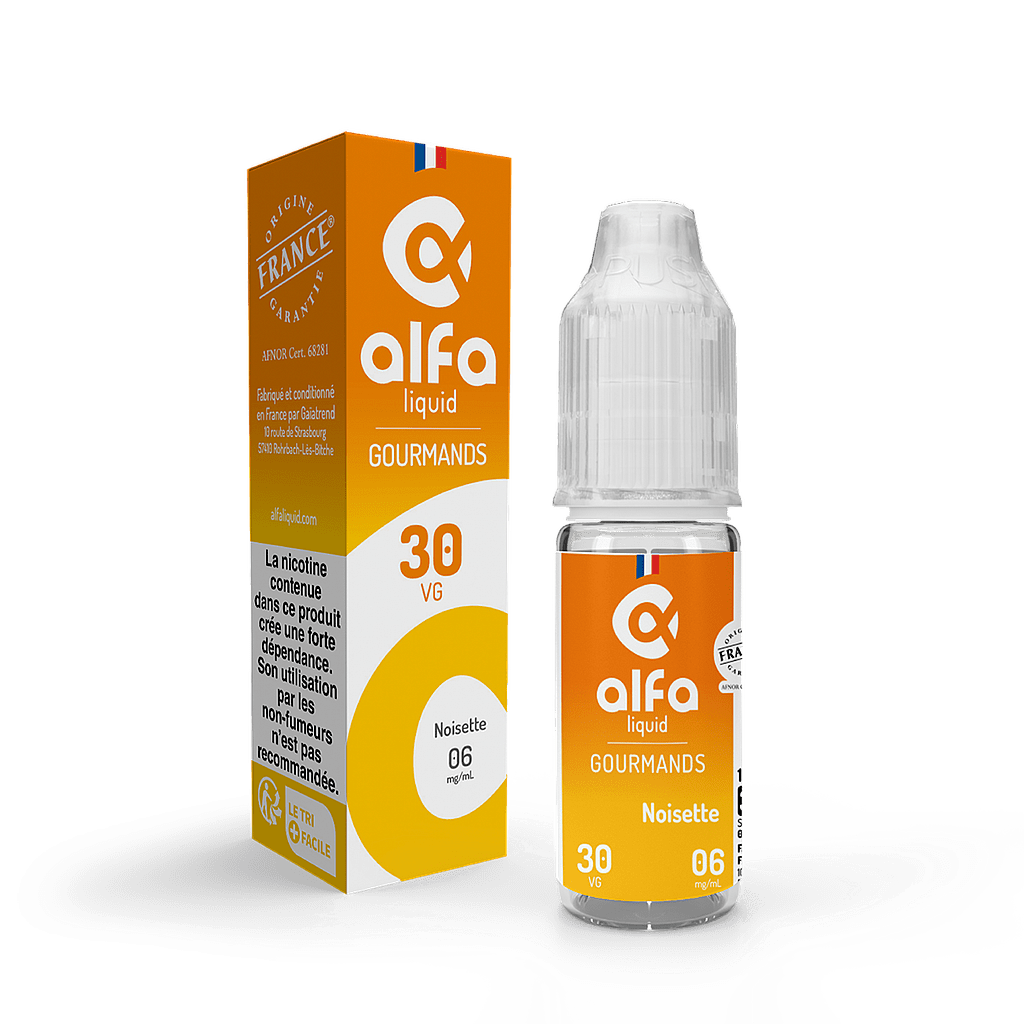De plus, la marque Alfaliquid n’utilise pour ses e-liquides que des arômes de qualité alimentaire naturels ou de synthèse dans son e-liquide Noisette.