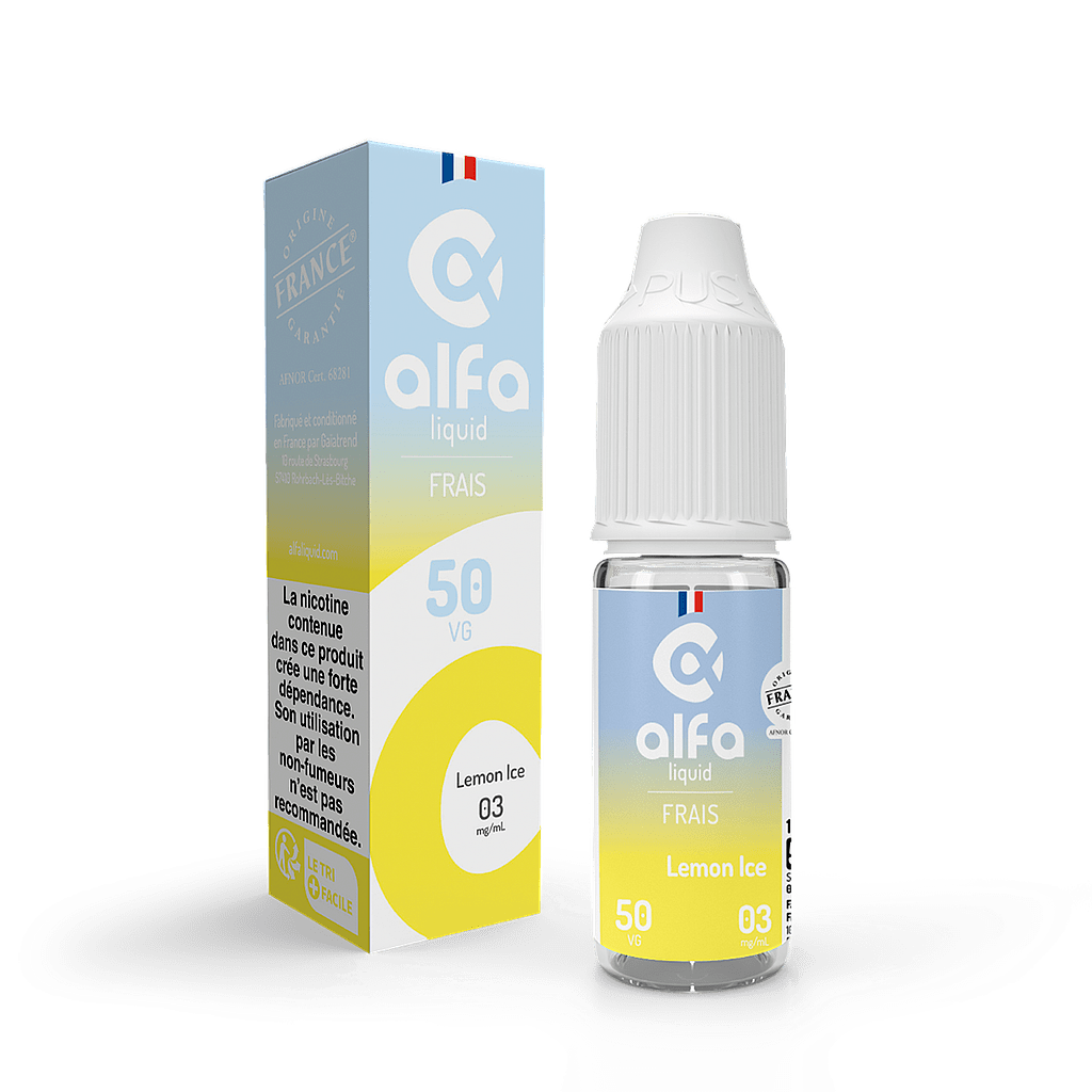 De plus, la marque Alfaliquid n’utilise pour ses e-liquides que des arômes de qualité alimentaire naturels ou de synthèse dans son e-liquide Lemon Ice.