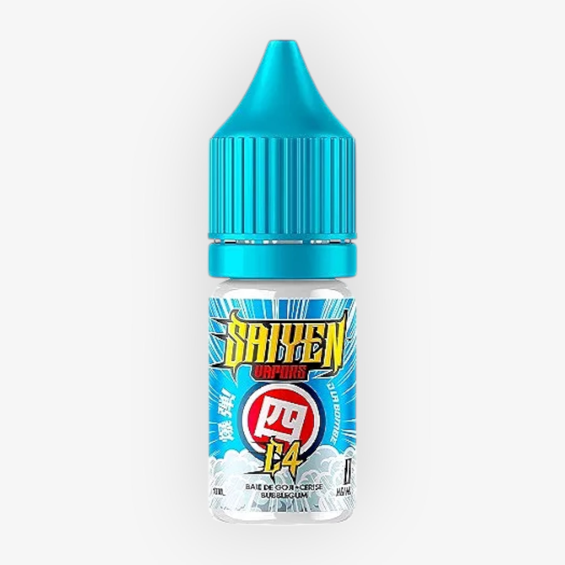 Le e-liquide C4 Saiyen Vapors nous propose un mélange de Baies de Goji, cerise, chewing-gum. Un véritable e-liquide à l'arôme Fruité que les amateurs du genre apprécieront à coup sûr ! La marque Saiyen Vapors propose le C4 à différents taux de nicotine afin de correspondre aux besoins de tous les vapoteurs.