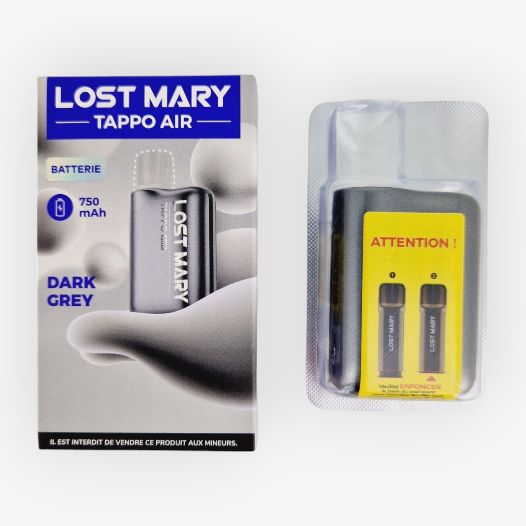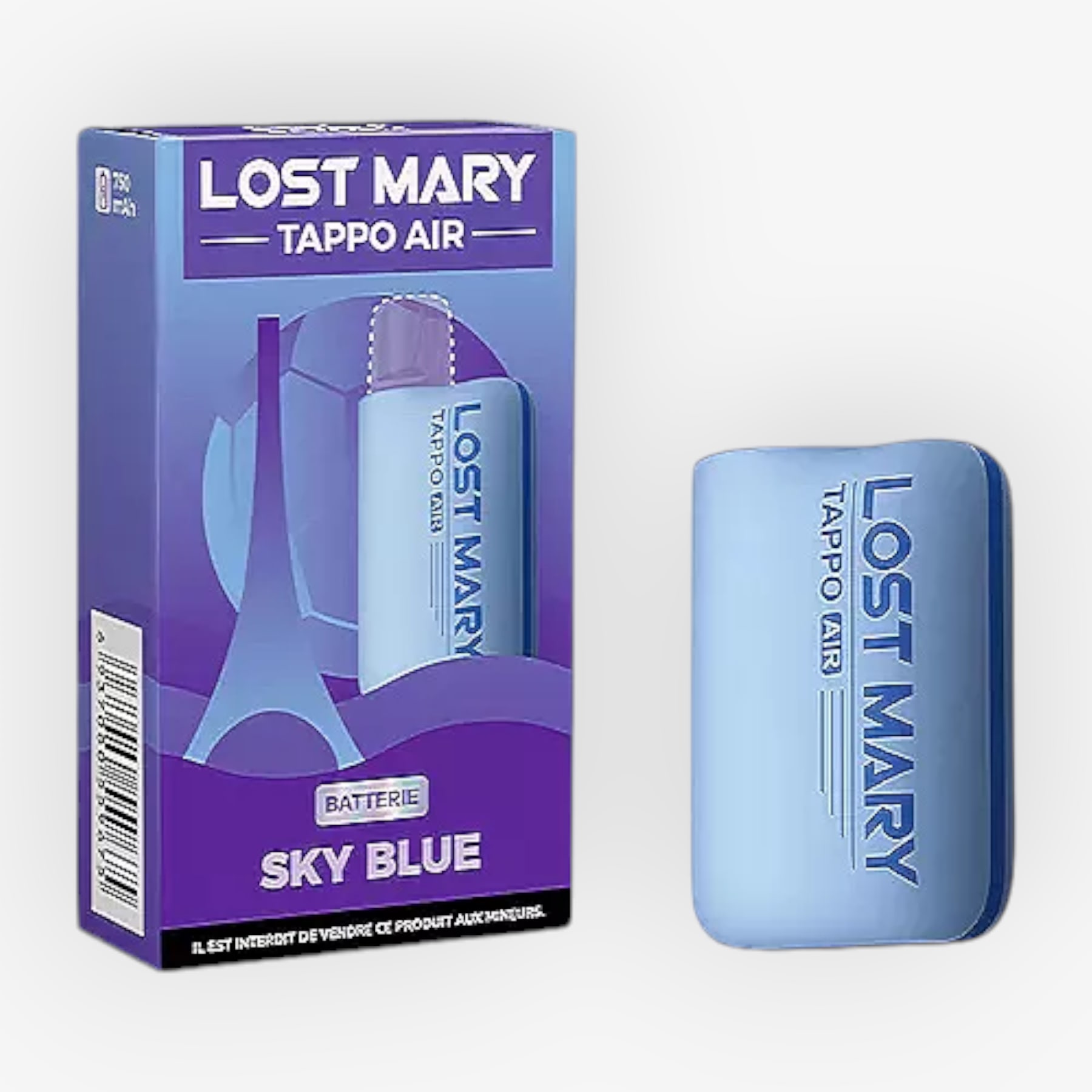 La batterie Tappo Air de Lost Mary est un composant de la puff rechargeable du même nom. En effet, il suffit de l'associer à une cartouche préremplie (non fournie) et vous obtiendrez une puff que vous pourrez recharger à volonté au moyen d'un câble USB Type-C (non fourni). Car nous avons affaire ici à une batterie rechargeable de 750mAh. Elle peut donc être conservée une fois la cartouche vidée de son contenu. En fait, seule la cartouche sera à remplacer et vous pourrez choisir entre les 22 saveurs proposées par Lost Mary.