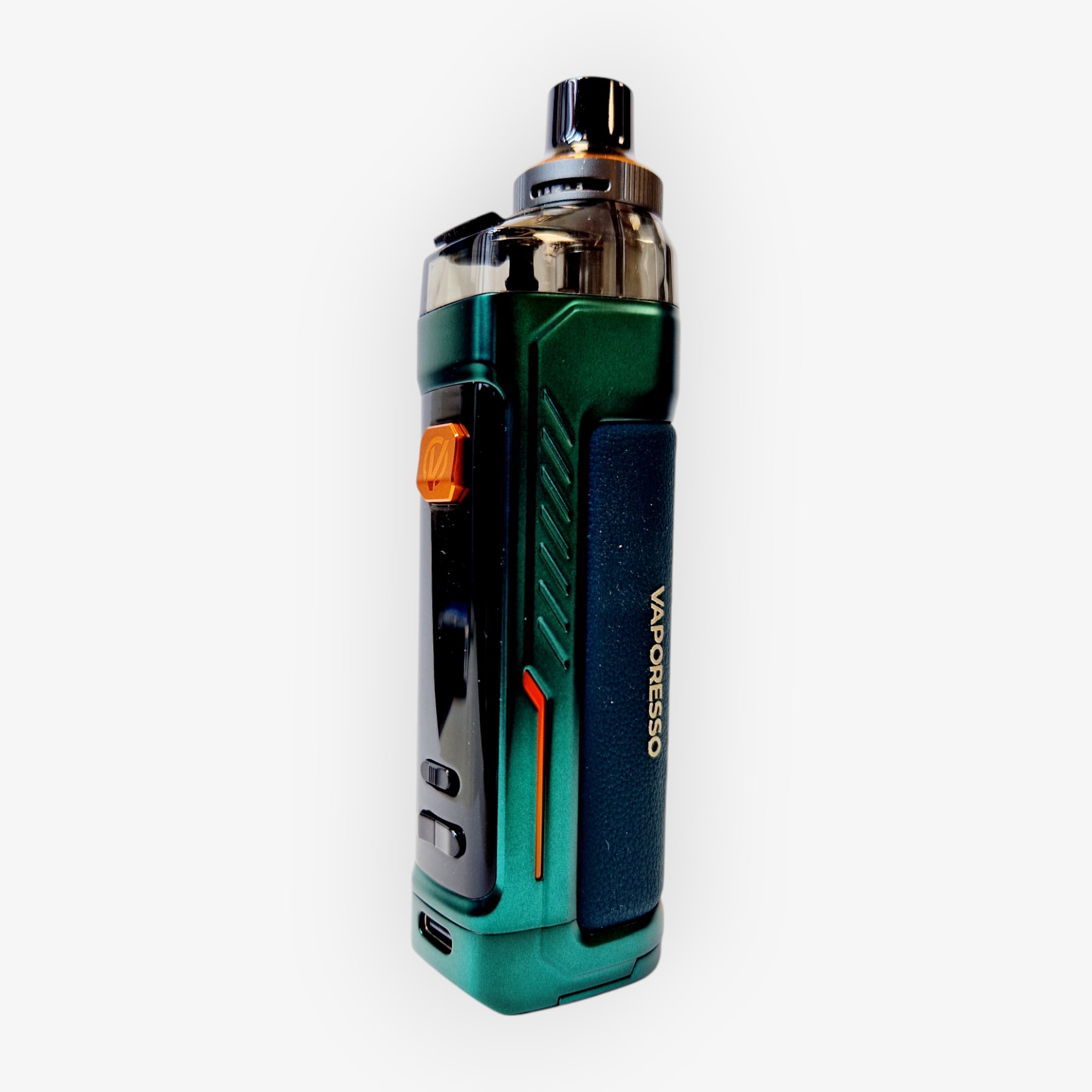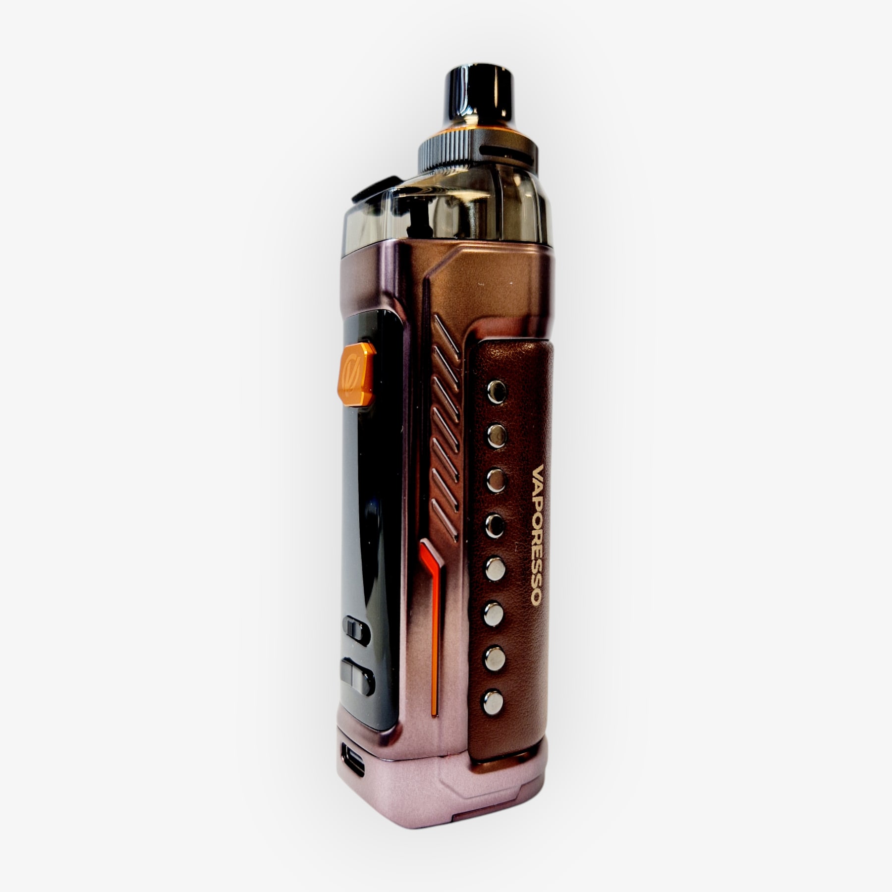 Car il est vrai que ce pod fait preuve d'ergonomie. Le bouton principal, les boutons de réglages et l'écran sont positionnés à la perfection sur sa face avant. Quant à la l'élégance, elle est au rendez-vous tant Vaporesso a soigné les lignes et l'aspect de ce modèle. Et que dire de cette colonne de voyants LEDs latéraux ?