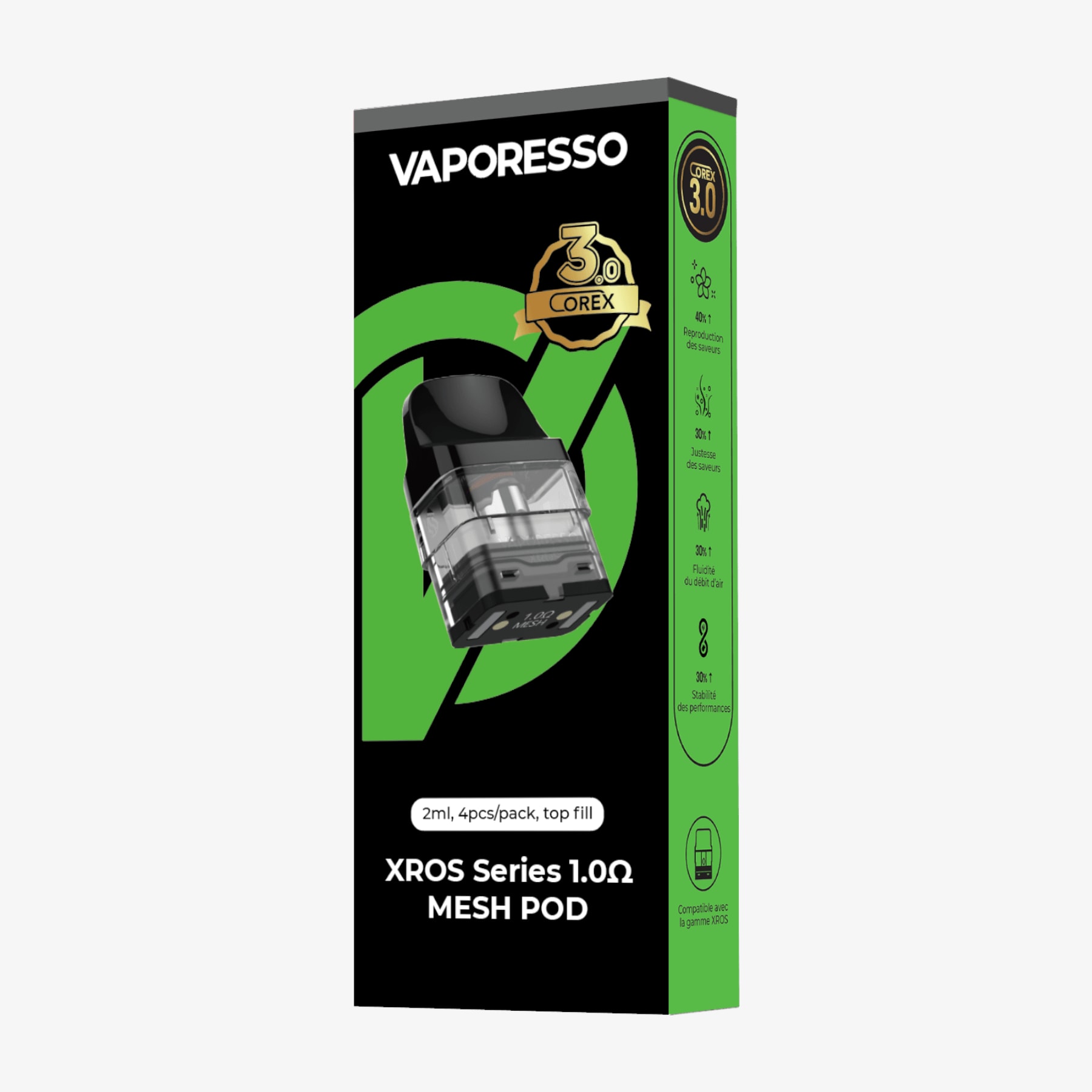 4 cartouchesde 3ml avec résistance intégrée, exploitant la technologie de chauffe Corex 3.0 et conçues pour les modèles Xros de Vaporesso.