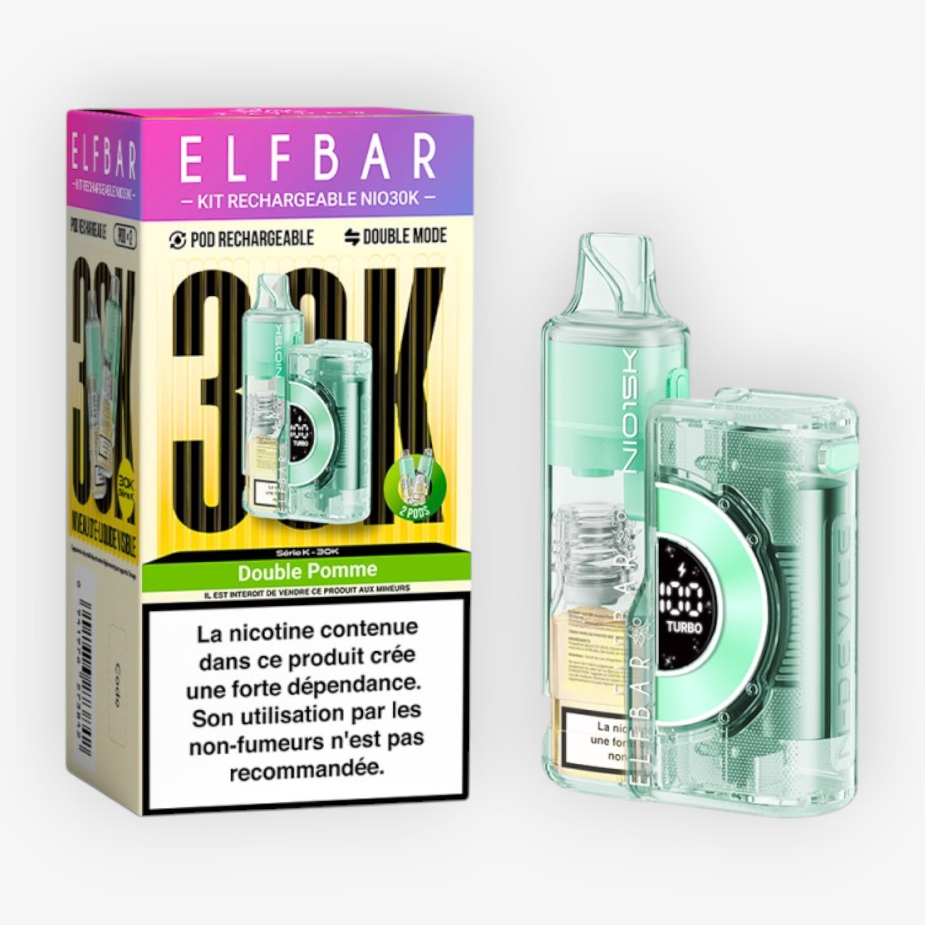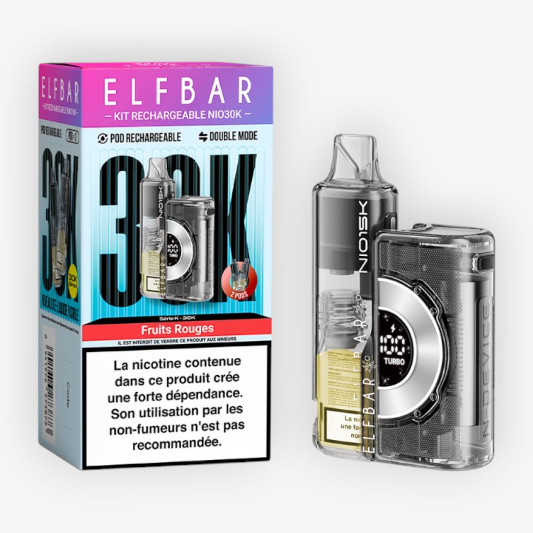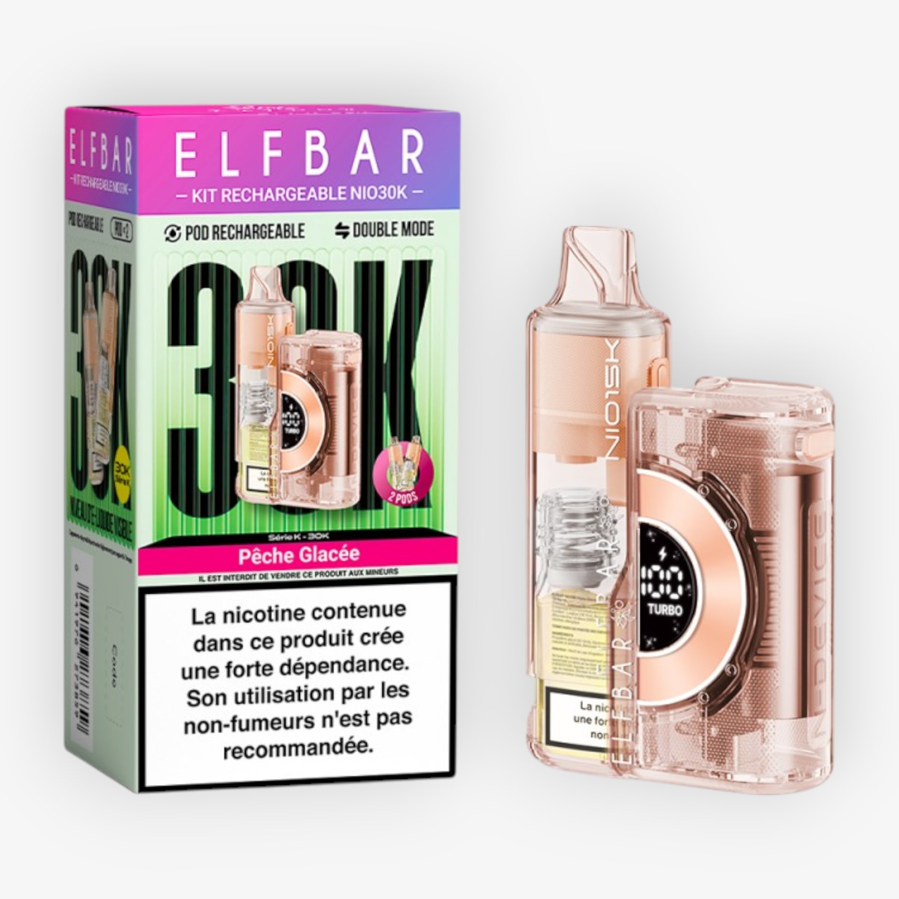 Voici la puff 30k Nio d'Elfbar, un modèle innovant conçu pour offrir un nombre impressionnant de 30000 taffs. Elle est dotée d'une puissante batterie de 1000mAh, propose 2 modes de fonctionnement et dispose d'un réservoir prérempli de 2ml de liquide, complété par une recharge supplémentaire de 10ml pour une utilisation prolongée. Vous pourrez d'ailleurs consommer un maximum de 2 cartouches (fournies) dosées à 20mg de sels de nicotine avant que cette puff ne devienne inutilisable.