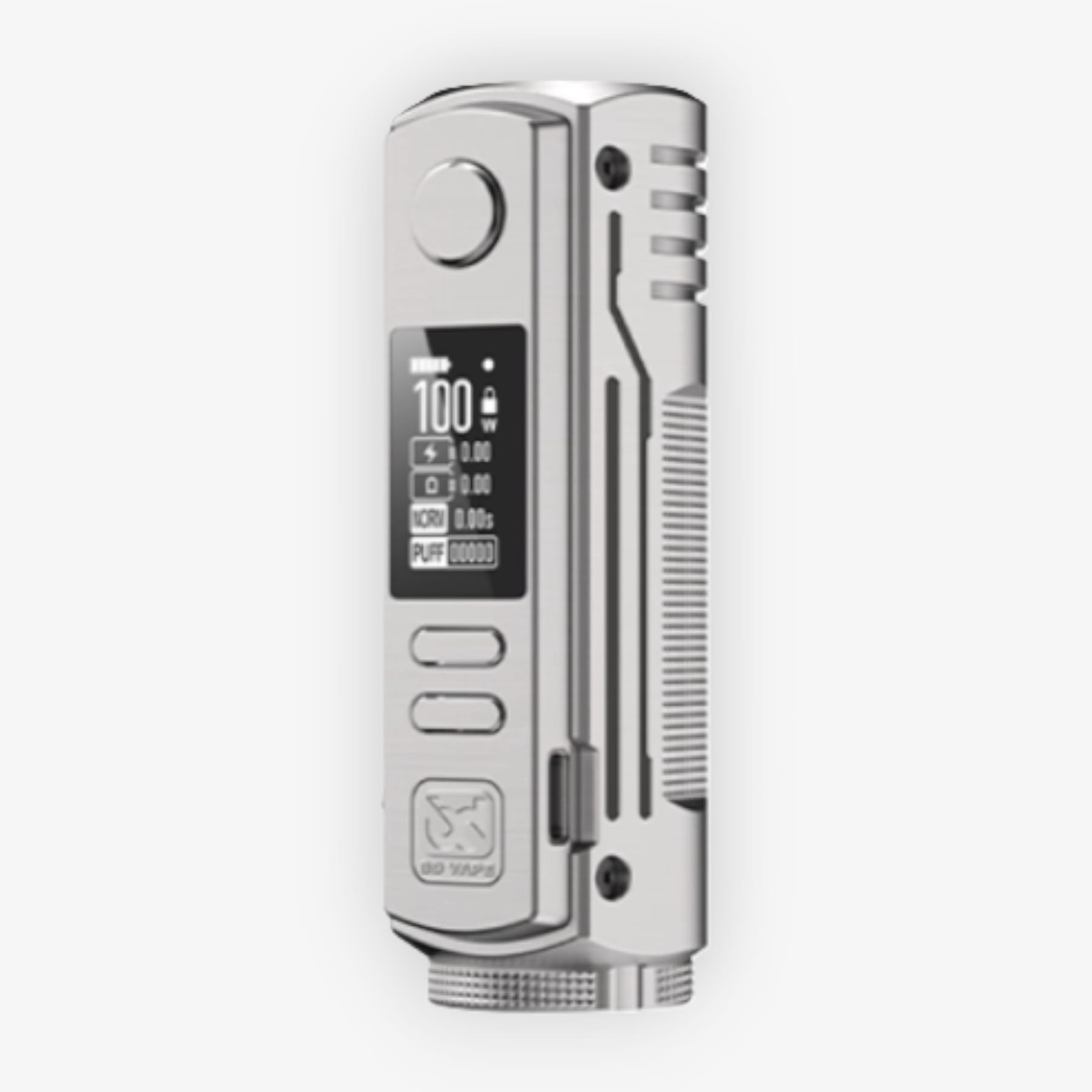 La box Rayden 100 V2 de BD Vape se distingue par son esthétique soignée et par sa conception pensée pour le confort de l'utilisateur. Avec des dimensions de 90 x 33 x 30mm et un poids de 88g, elle se loge dans la paume de la main pour procurer un confort remarquable et, au sommet, vous trouverez un plateau circulaire pourvu d'une connectique 510 et pouvant accueillir un atomiseur au diamètre maximal de 25mm.