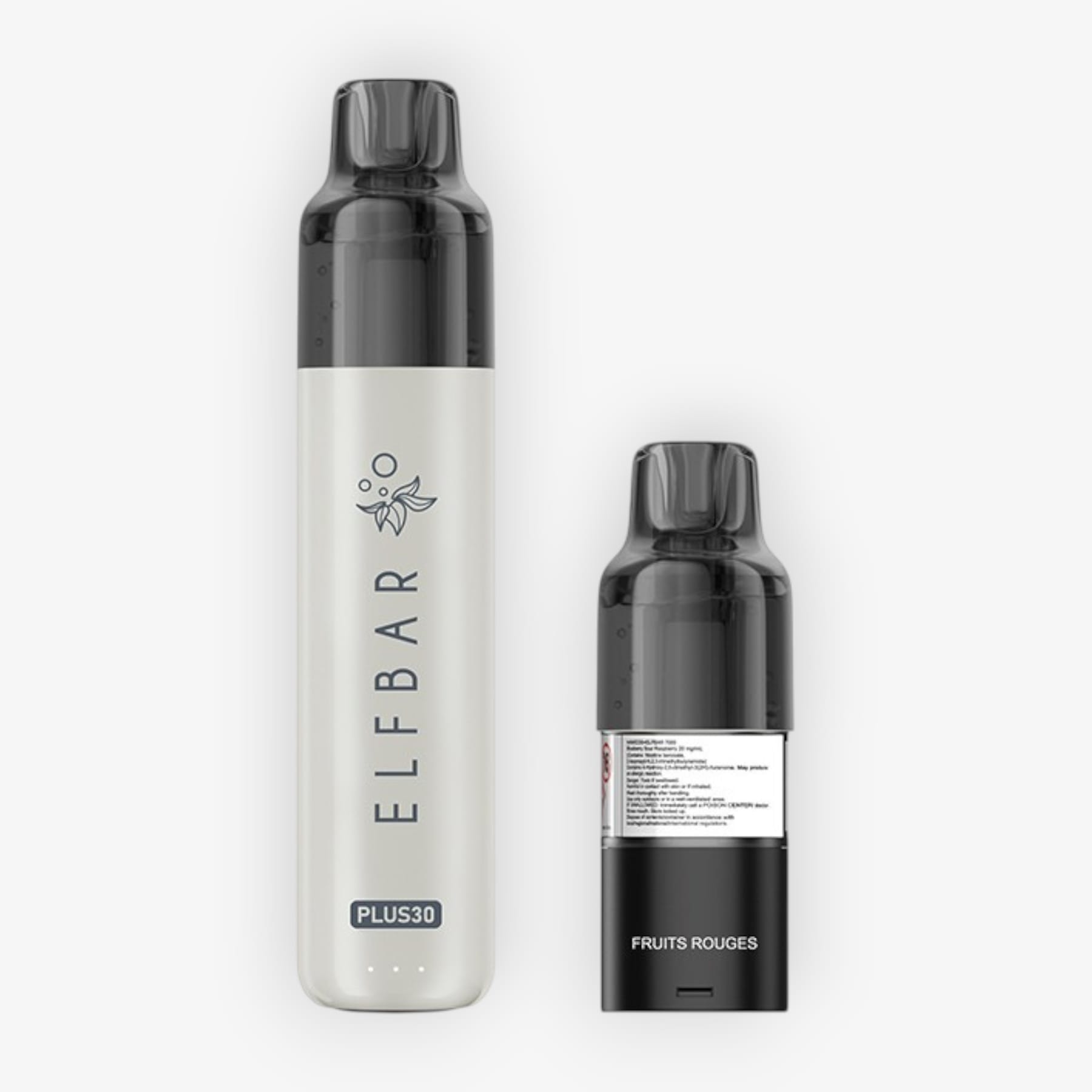 La Plus30 d'Elfbar est une puff aux sérieux arguments. En effet, voilà une puff rechargeable à volonté, équipée d'une batterie de 800mAh et munie d'un pod prérempli de 2ml avec un réservoir additionnel de 8ml. Ici, 2 cartouches préremplies de 10ml et contenant 20mg de sels de nicotine sont fournies. Vous pourrez, avec chacune, pratiquer 15000 taffs, soit 30000 taffs avec les 2. Ensuite, une fois leur contenu épuisé, vous conserverez la batterie et n'aurez que la cartouche à remplacer.